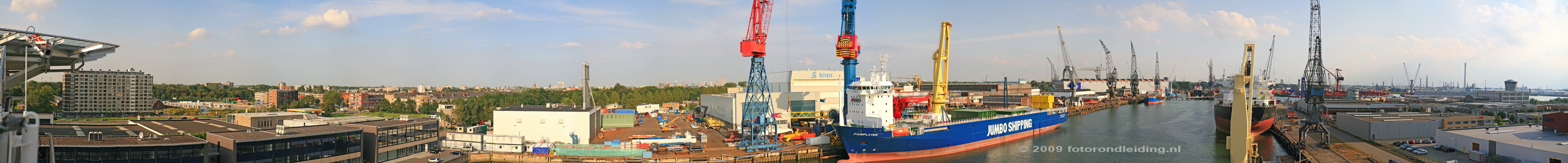 Schiedam Wiltonhaven vanaf Offshore schip Hos Superior Achiever - september 2008 - pano 178.
