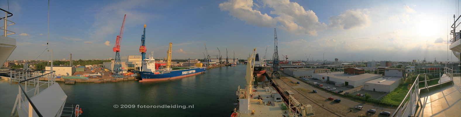 Schiedam Wiltonhaven vanaf Offshore schip Hos Superior Achiever - september 2008 - pano 179.